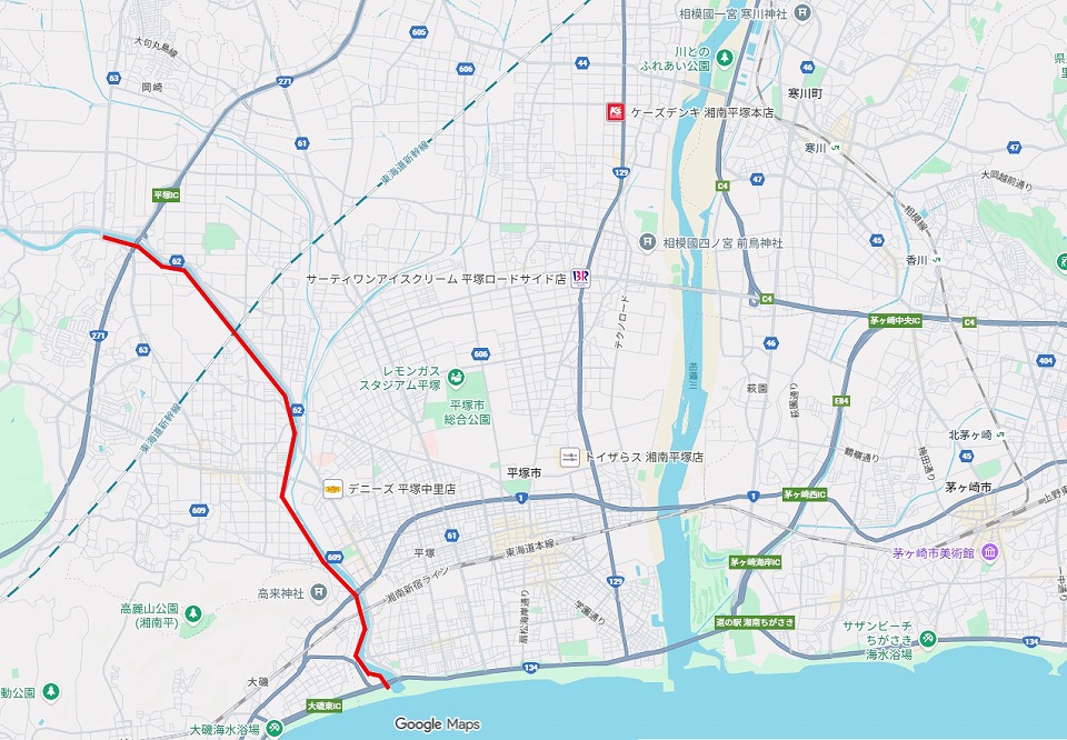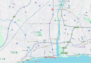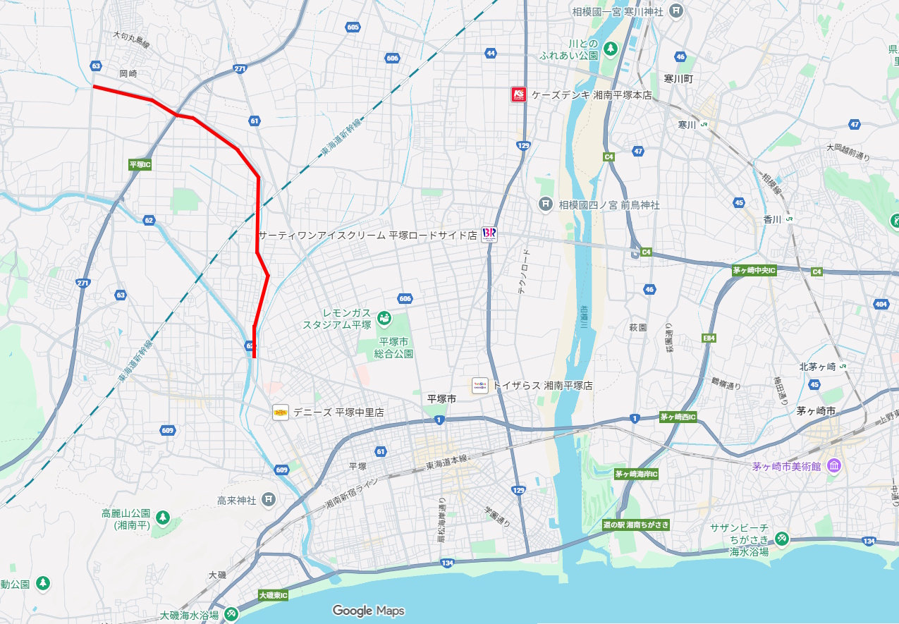 平塚新港の辺りでは相模川沿いのサイクリングコースと繋がるため、南部の海岸から北東部の相模川沿いまで移動しやすくなりました。