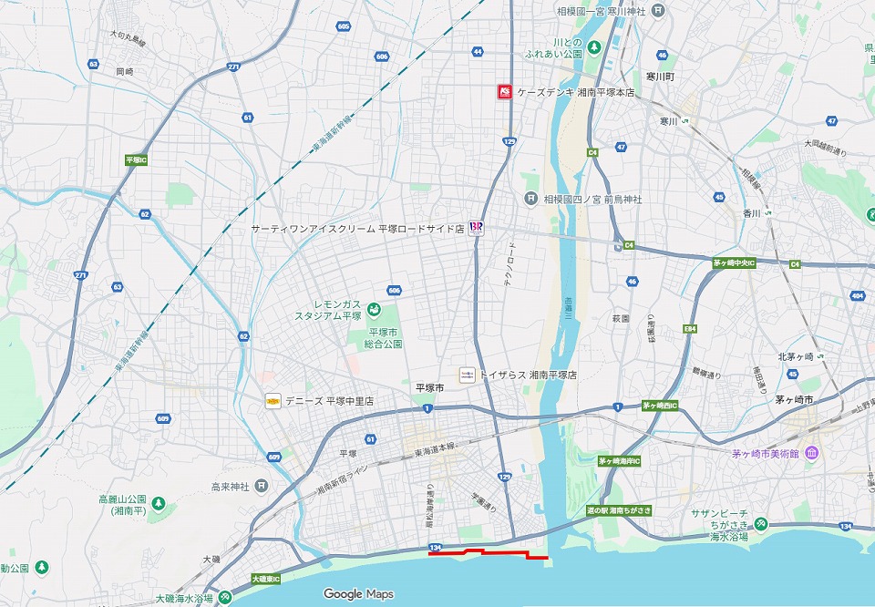 歩行者や自転車が通れる道が南西部も整備され、南東部と繋がると、平塚の海岸沿いが全てカバーされます。